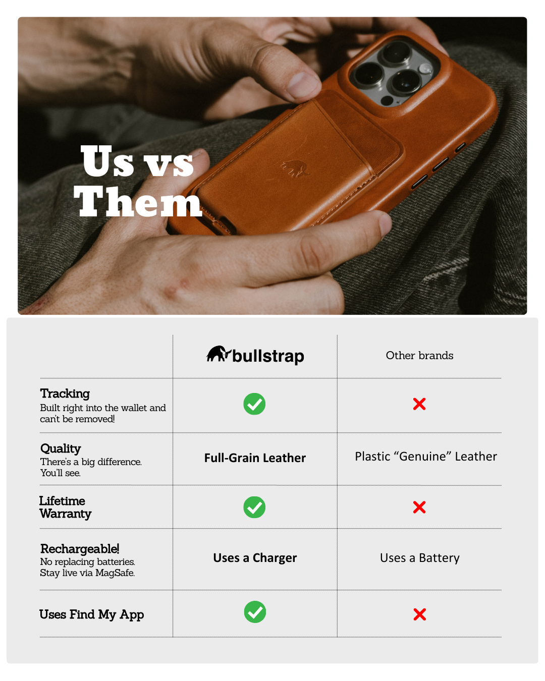 Made from the highest-grade materials available, your Bullstrap wallet will come to life with age!