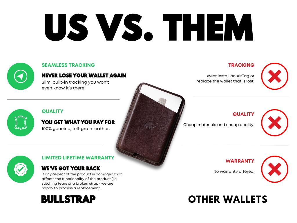 Made from the highest-grade materials available, your Bullstrap wallet will come to life with age!